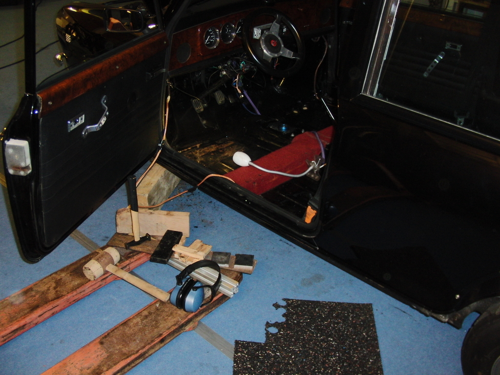 The floor is now mostly straightened. Will need to remove the original unusable lift points and have a look from the bottom to straighten the rest of it. There is one more severe bend in the passenger side holm. Don't have the time to fix this right now, but I think it should be possible by welding some bolts to the right places and pulling at them. Not now though... Also on the above picture, you see a piece of copper on steel.