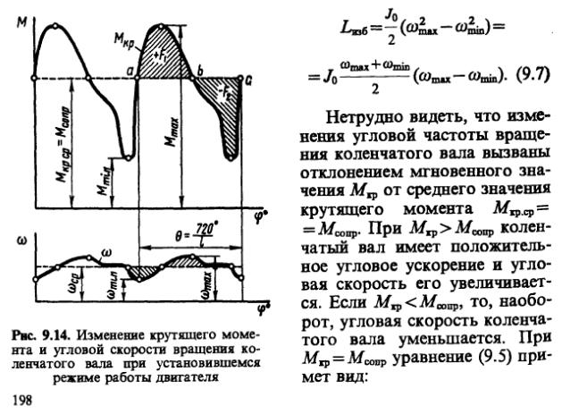 На рисунке представлена зависимость крутящего момента и угловой скорости от угла поворота КВ. i - число цилиндров. Для i = 4 на рисунке представлен интервал 360 градусов. Почитай описание и поймешь почему меняется четыре раза, а не два.