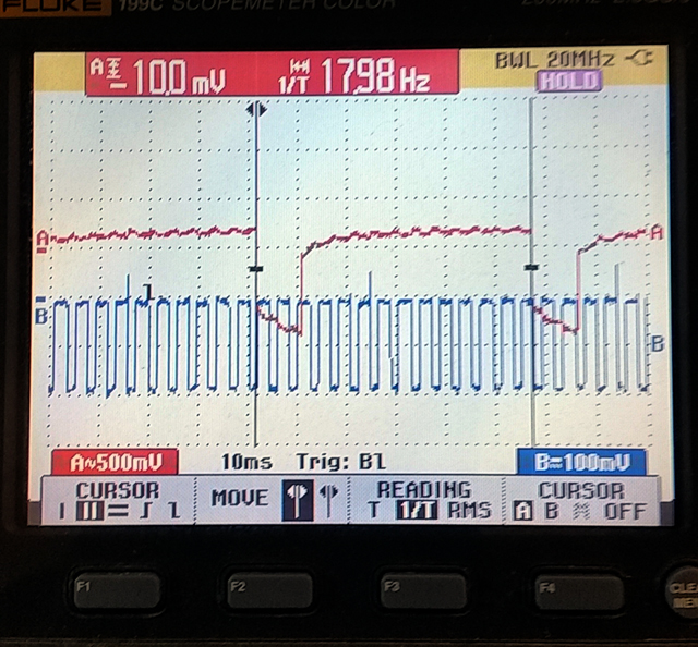 The bad part is the measurement cycle time. That is, the rate of lambda measurements. In free air, it is about 18Hz. In the lambda 0.88 gas it got up to almost 40hz. That means that, even if they re-enabled "instant mode", you could only get about 20 samples per second, reliably. Really, only 1/2 of that rate ( Nyquist ) in transition. This works out to about ~12 samples per second. Which matches the serial data rate and the maximum analog output rate. Which, again, is probably not an accident.