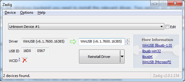 I opened Zadig just to have a look but didn't do anything with it yet just in case the driver is already installed and I screw it up.