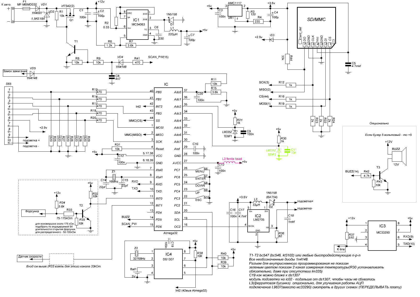 Stranger21, пропустил твое сообщение.Stranger21 wrote:Я собрал БК в ниву , мега32 + ЖК экран от сотового + SD карта . согласование уровней банально - резистивными делителями - все работает . и Экран и Карта . есть вариант через микросхемки , но я не нашел их у себя в продаже .