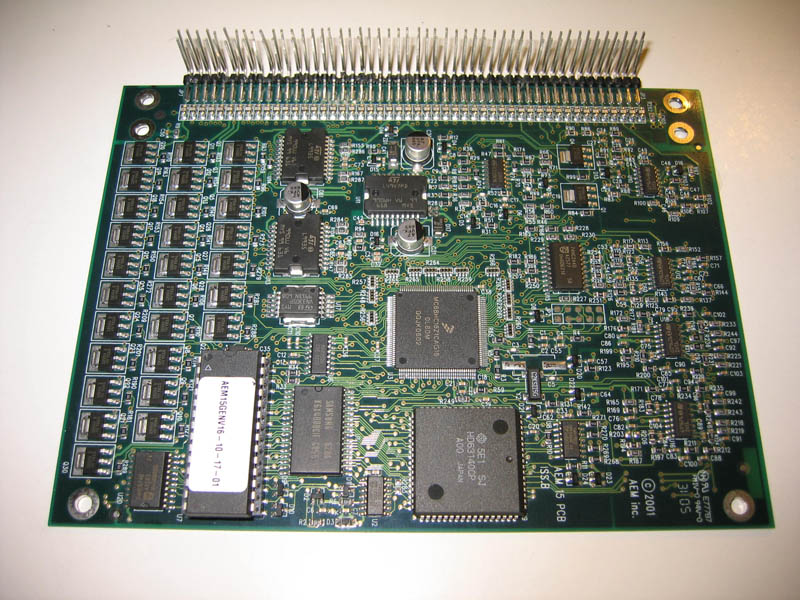 AEM EMS. Design copyright appears to be 2001 and PCB silkscreen date mid 2005. This is stacked design with brains board which I guess is same for all variants of this series and vehicle specific interface board.