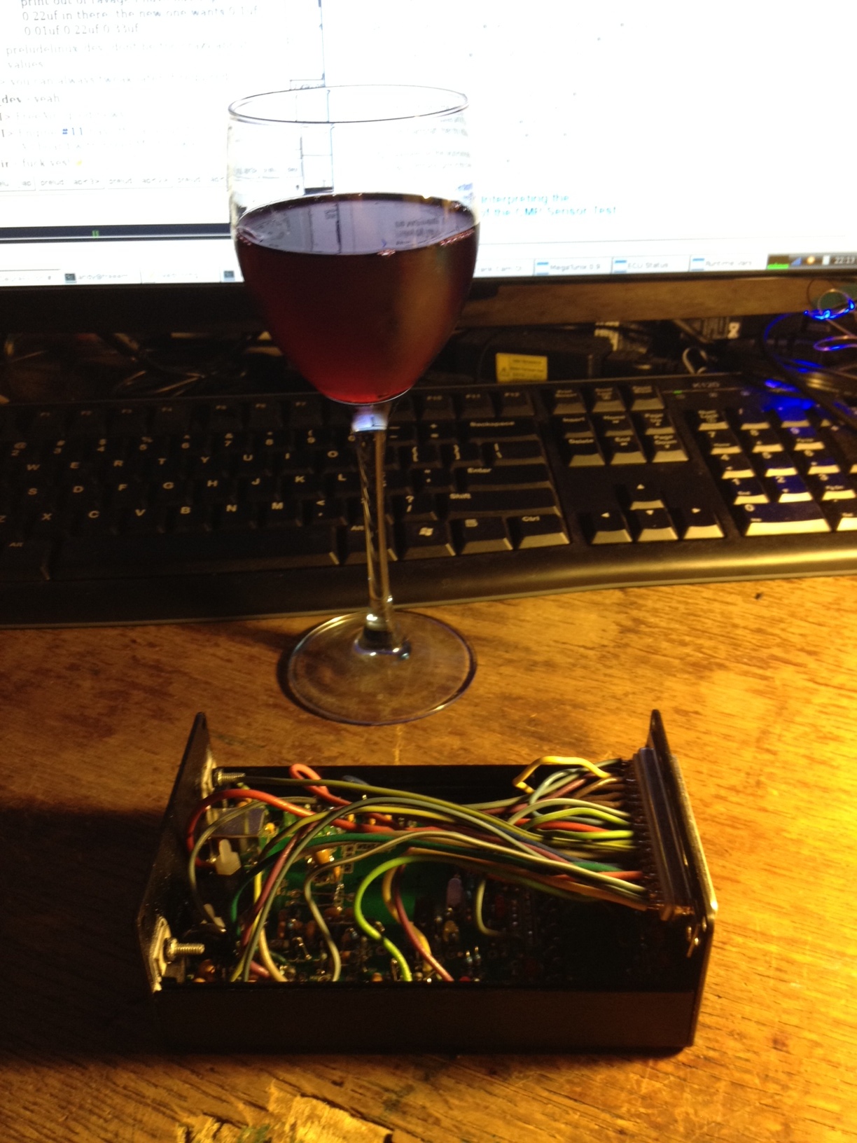 Jaguar A3 after a successful run on my 3.1L V6 relaxing with a glass of red wine in front of my development computer.